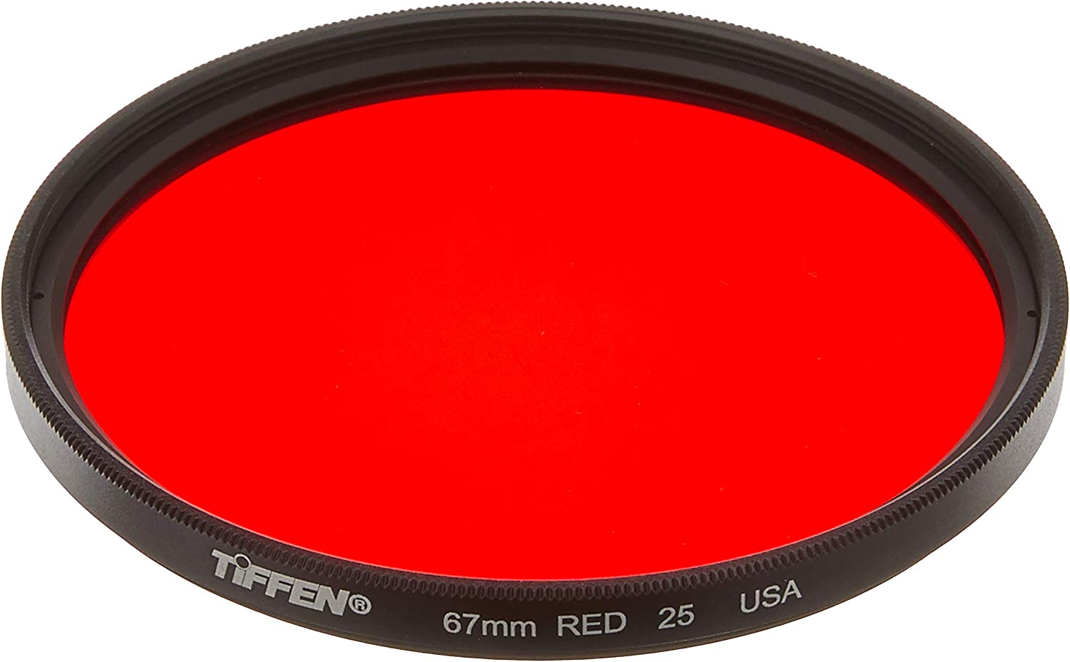 The #25 Red Filter from Tiffen is a filter designed to build contrast in black and white photography and creates separation between the tones. Using this filter it creates dramatic skies or simulate a moonlit scene during the day by slightly underexposing the image and also eliminating fog and haze. Infrared film is enhanced with extreme contrast turning skies even more dramatic and turning foliage white in landscape photos. The filter has a filter factor of 8, so you must increase your exposure by 3 stops to compensate. Tiffen filters are not dyed, but are manufactured by using ColorCore technology. This process laminates the filter material between two pieces of optical glass and grinds down and polishes the glass. The glass is then mounted to the metal ring, which after that can be screwed onto the lens for the desired effect.