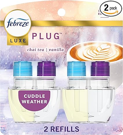 Febreze Plug In Air Freshener, Odor-Fighting Scented Oil Refill, Air Fresheners for Home and Bathroom and Kitchen, Long Lasting for Strong Odors, Cuddle Weather Scent, 0.87oz Refills, 2 Count