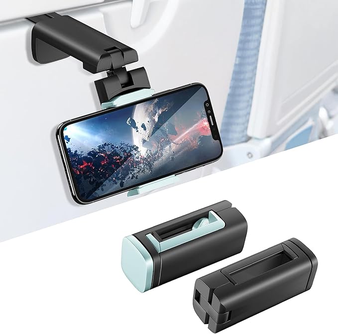 2 Pack Universal Airplane Travel Phone Holder: Travel Essentials Phone Mount for Desk with Multi-Directional 360 Degree Rotation, Trip Accessories Must Haves Phone Holder (Black+Blue)