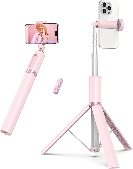 ATUMTEK 55" Selfie Stick Tripod, All-in-one Extendable Aluminum Phone Tripod with Rechargeable Bluetooth Remote for iPhone, Samsung, Google, LG, Sony and More, Fitting 4.7-7 inch Smartphones, Pink