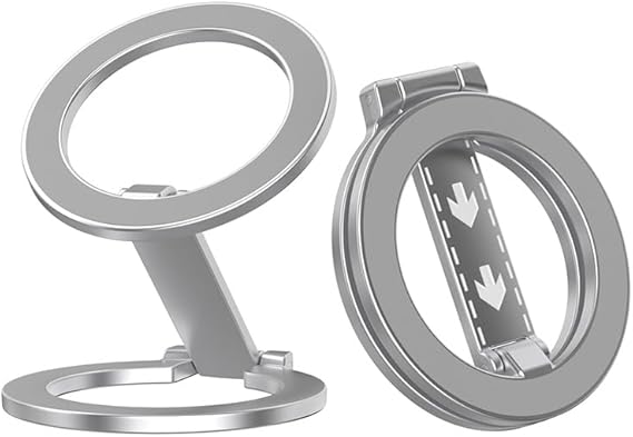 Magnetic Phone Stand, Multi-Functional Foldable, 360 å¡ Rotation, Double-Side Portable Phone Grip for All Series of Phones (Silver)