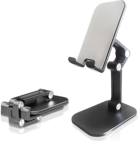 Phone Stand, Adjustable Height and Angle Foldable Cell Phone Stand Holder for Desk, Taller iPhone Stand Compatible 4-11 Inch All Mobile Phone/iPad/Tablet - Black (Black)
