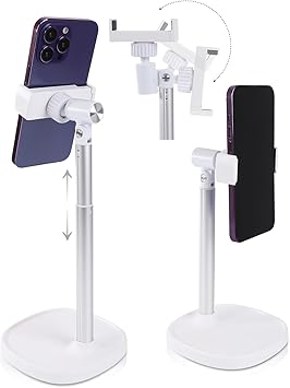 Phone Stand for Desk, Adjustable Height Cell Phone Stand, Foldable Phone Holder, Cell Phone Stand Holder for Office Home, Compatible with iPhone, Samsung Galaxy and All Phones. (White)