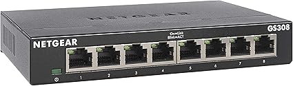 NETGEAR 8-Port Gigabit Ethernet Unmanaged Essentials Switch (GS308) - Home Network Hub, Office Ethernet Splitter, Plug-and-Play, Silent Operation, Desktop or Wall Mount
