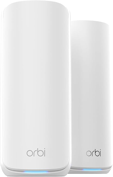 NETGEAR Orbi 870 Series Tri-Band WiFi 7 Mesh System (RBE872) - Router + 1 Satellite Extender, Security Features, Up to 21 Gbps, Covers Up to 6, 000 Sq. Ft., 150 Devices, 10 Gig Internet Port, BE21000