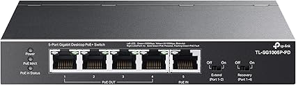 TP-Link TL-SG1005P-PD | 5 Port PoE Passthrough Gigabit Ethernet Switch | 1 PoE++ In@90W, 4 PoE+ Output up to 66W | Plug & Play | Extend Mode | QoS, IGMP, PoE Auto Recovery | PoE Powered ONLY | Fanless