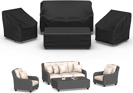 Mrrihand Patio Furniture Covers, 4 Piece Outdoor Furniture Cover Waterproof includ Ourdoor Sofa Cover, 2 Chair Covers, Coffee Table Cover with Windproof Buckle Strap and Adjustable Drawstring-Black