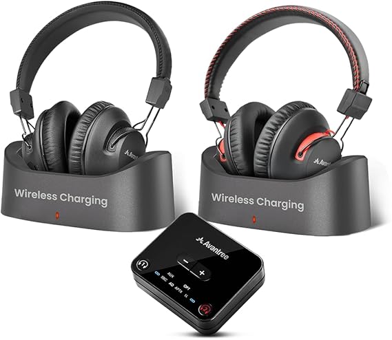 Avantree HT41899 Plus 2 - Dual Bluetooth Wireless Headphones for TV Watching with Transmitter & Charging Docks, aptX Adaptive & Low Latency Support, Compatible with Optical & 3.5mm AUX TVs