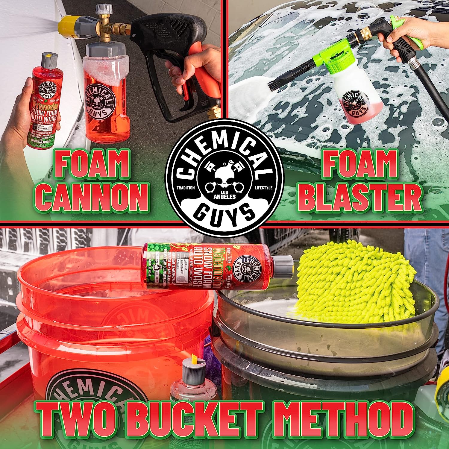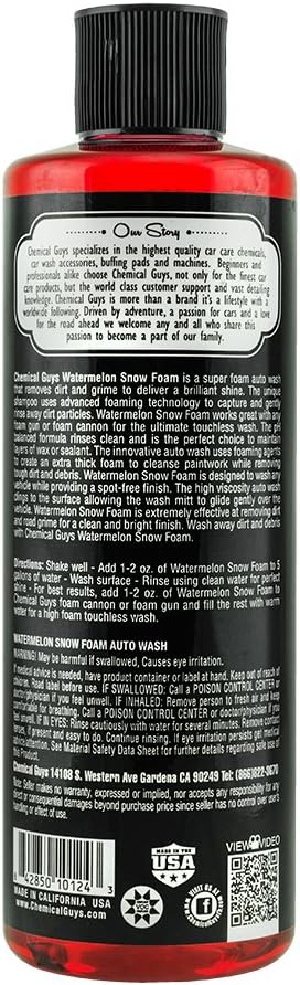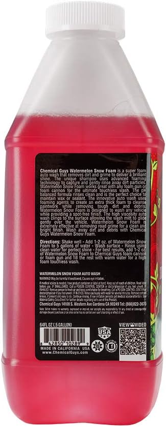 • BUCKET, FOAM GUN OR CANNON – Whether you are washing with a wash mitt and bucket, a foam gun connected to your garden hose or a foam cannon connected to your pressure washer, Watermelon Snow Foam is the right car wash soap to deliver loads of foam and suds to get a great wash!