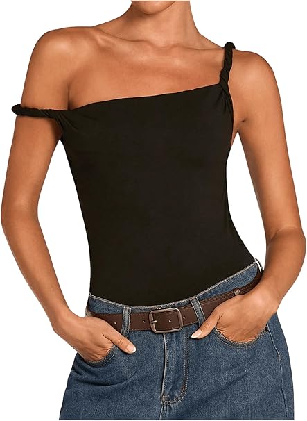 Milumia Women's One Shoulder Twist Backless Bodysuit Top Sleeveless Leotards