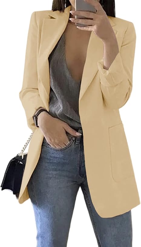 Cnkwei Womens Casual Blazers Open Front Long Sleeve Lapel Collar Work Office Jacket