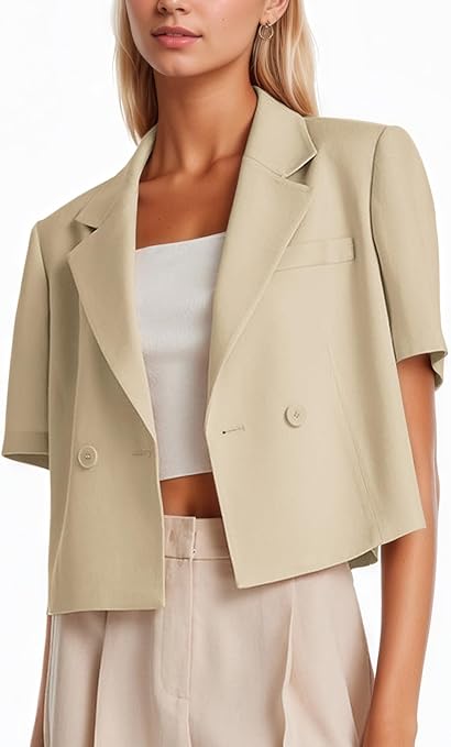 Cropped Blazer for Women 2025 Summer Short Sleeve Full-Lined Lightweight Elegant Casual Office Work Outwear Tops