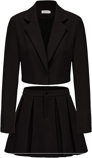 EXLURA Women's Business Casual Blazer Suit Sets and Pleated Mini Skirt 2 Piece Outfits Trendy Long Sleeve Y2K Clothes 2025