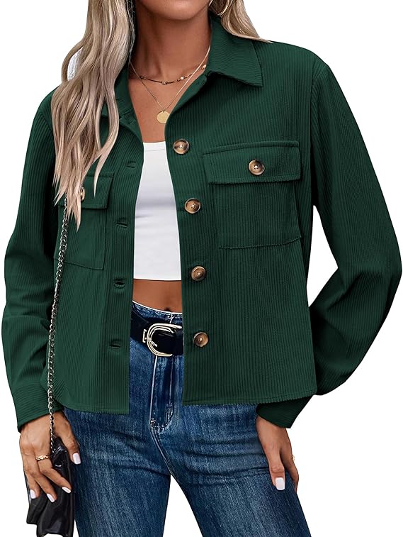 Zeagoo Womens Fashion Cropped Shackets Corduroy Button Down Crop Jackets Tops Long Sleeve Shirts Trendy 2025
