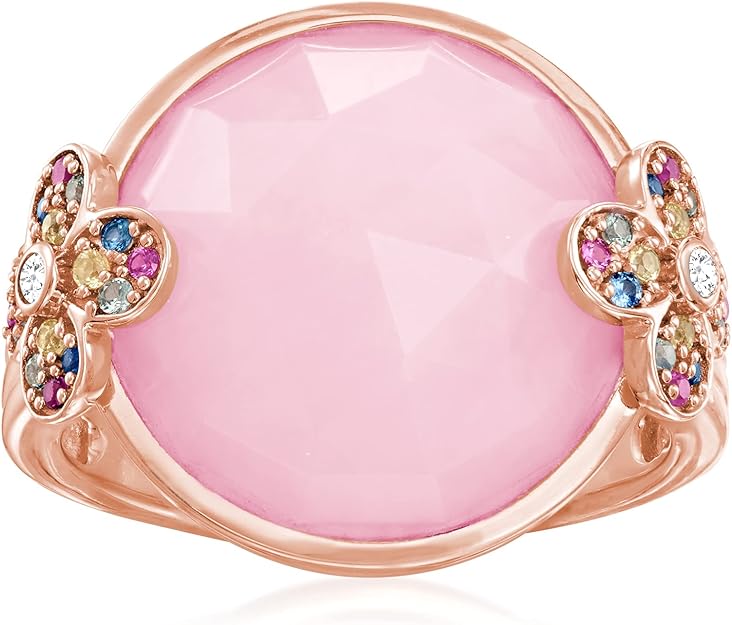 Ross-Simons Pink Opal and .24 ct. t.w. Multicolored Sapphire Floral Ring With White Zircon Accents in 18kt Rose Gold Over Sterling