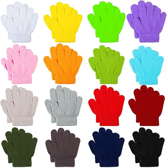 Cooraby 16 Pairs Winter Kids Warm Magic Gloves Full Fingers Stretchy Knitted Gloves for Boys or Girls