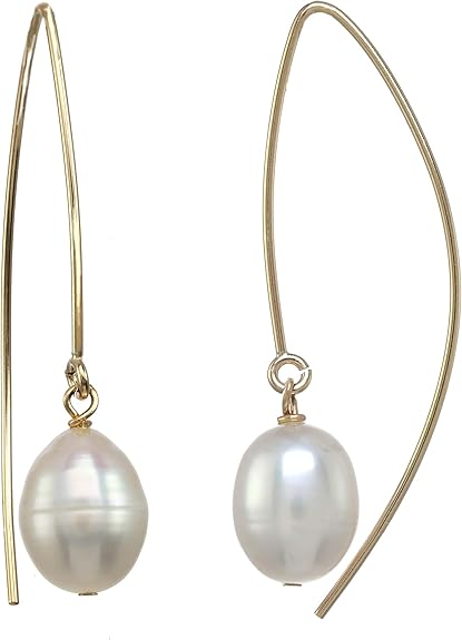14 k Gold Filled Marquise Hook Earrings with Cultured Rice White Freshwater Pearl Drops, 7.5-8 mm