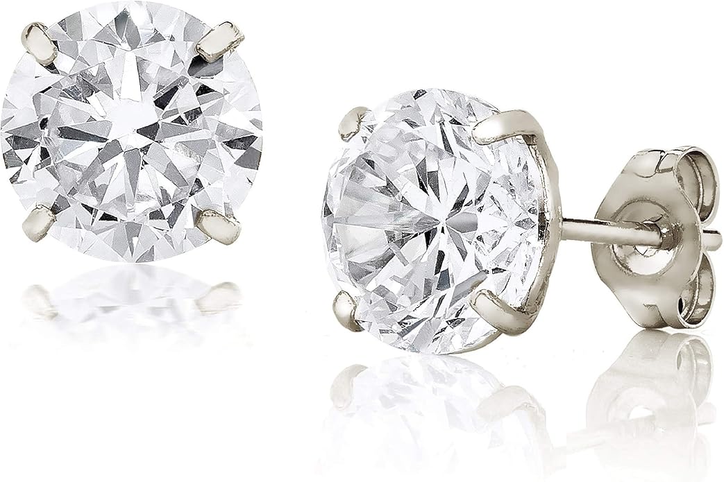 14K Gold 3MM-8MM Round Basket Setting CZ Stud Earrings - Available in White, Yellow, or Rose