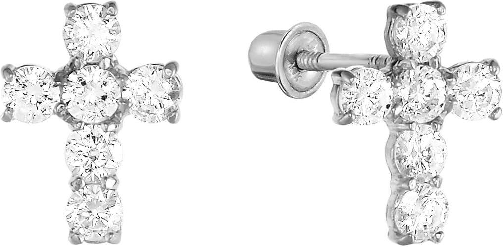 14k Gold Very Small Cross Stud Earrings with Cubic Zirconia, Choice of Gold Type and Style