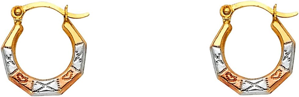 14k Tri Color GoldHeart Pattern Fancy Hoop Earrings (12 x 12mm)