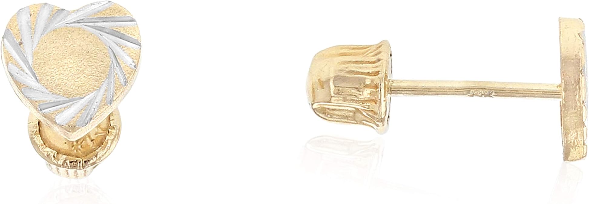 14K Two Tone Gold Fancy Heart Stud Earrings