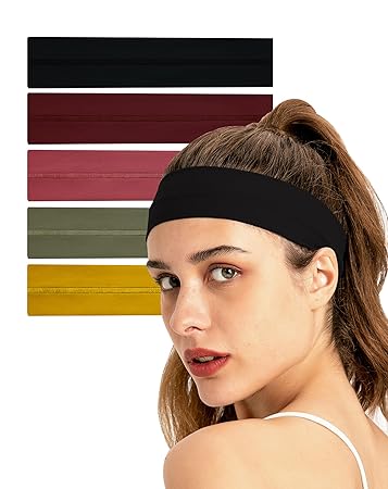 Headbands for Women Short Hair Non Slip Elastic Sweat Hairbands Soft Fabric Hair Bands Workout Yoga Running Sport Thin Hair Wrap for Girls