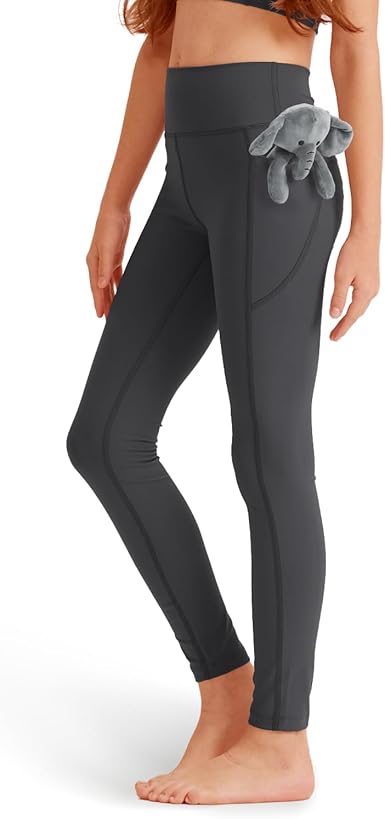 Girls' Black Athletic Leggings with Pockets, White Ankle Length Yoga Pants for Kids