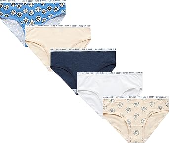 Life is Good Girls' Hipster Underwear - 5 Pack/10 Pack Cotton Panties for Girls with Stretch Logo Waistband (Sizes: S-L)