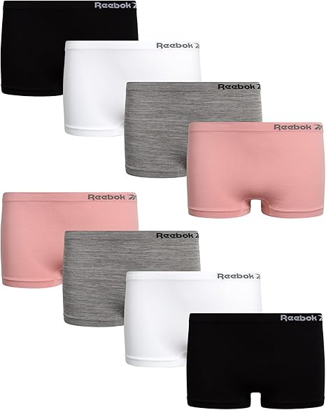 Reebok Girls' Boyshorts Underwear - 8 Pack Soft Seamless Panties Boy Shorts - Breathable for Girls (6-16)