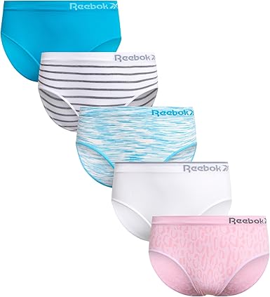 Reebok Girls Underwear - 5 Pack Breathable Stretch Performance Seamless Hipster Underwear for Girls (Sizes: 6-16)