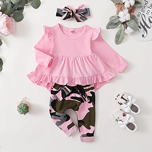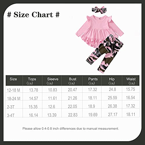 Kucnuzki 18-24 Months Girl Clothing Toddler Girl Clothes Cute Little Girl Outfit Baby Ruffle Shirt Top Camo Pink Pants Set 3Pcs Fall Outfit Baby Clothing
