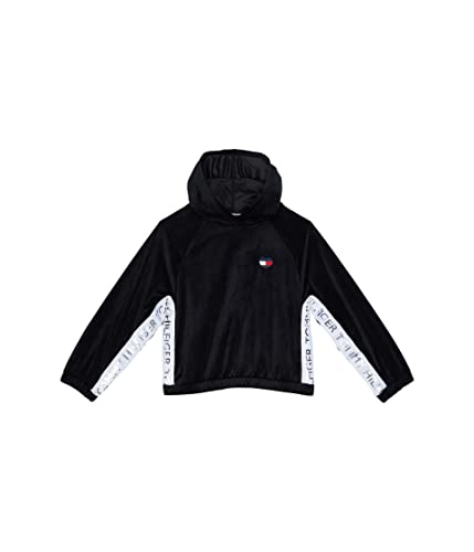 Tommy Hilfiger Girls' Logo Sweatshirt, Pullover Fleece Hoodie, Soft & Relaxed Style, Black Velour, 8-10