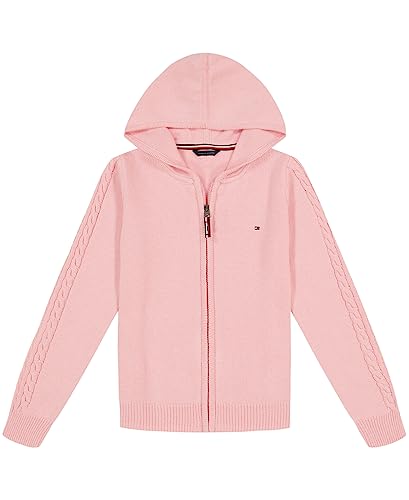 Tommy Hilfiger Girls' Long Sleeve Zip Cardigan Hooded Sweater, Rose Shadow