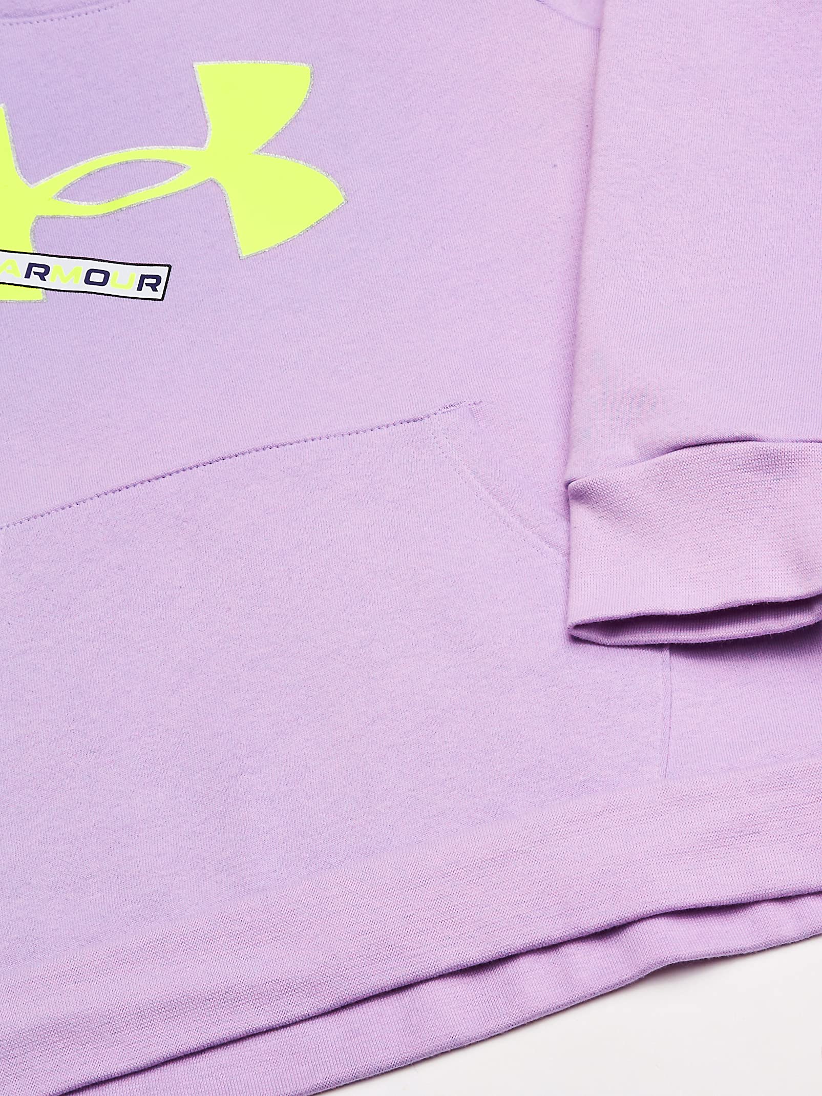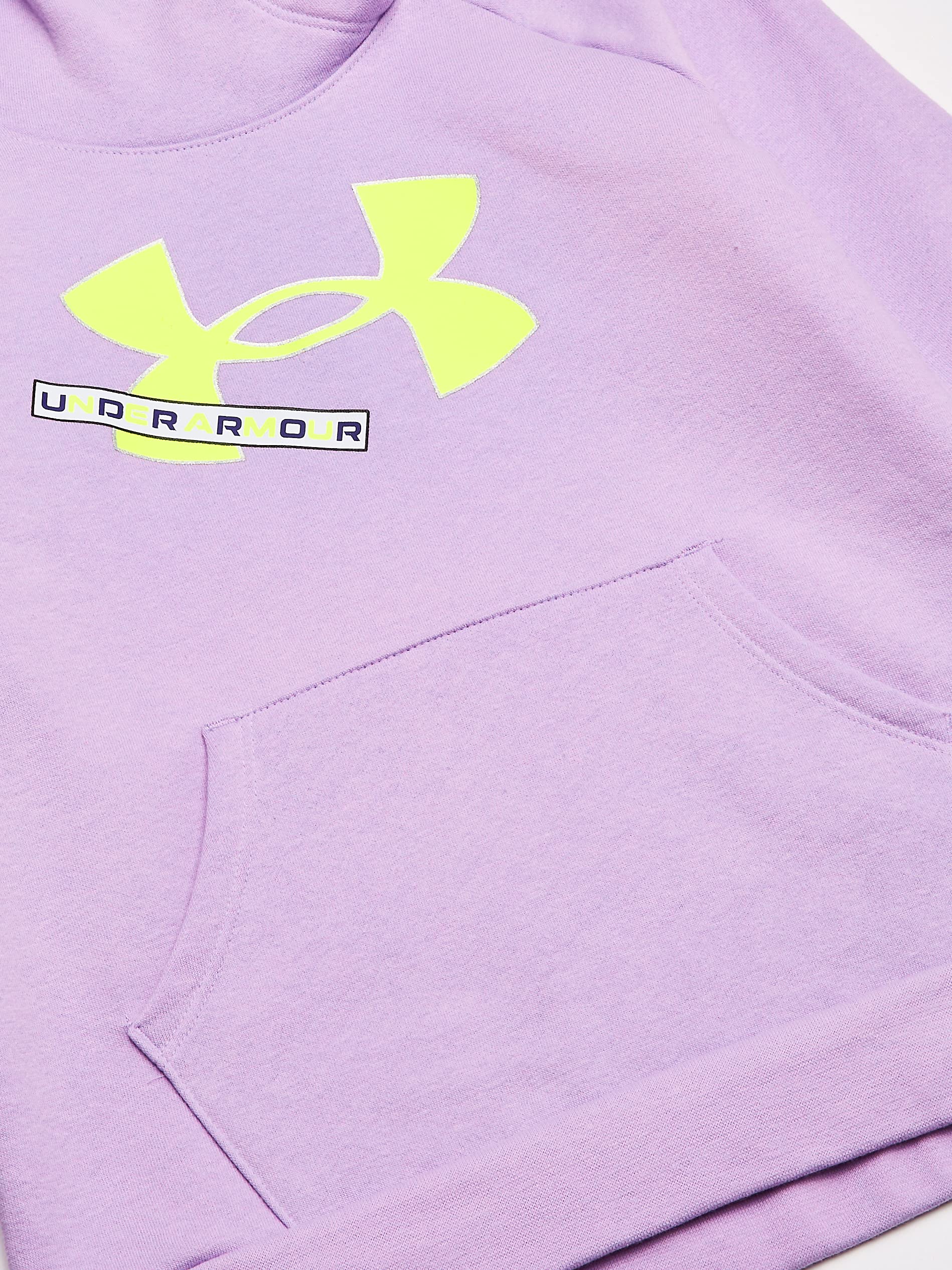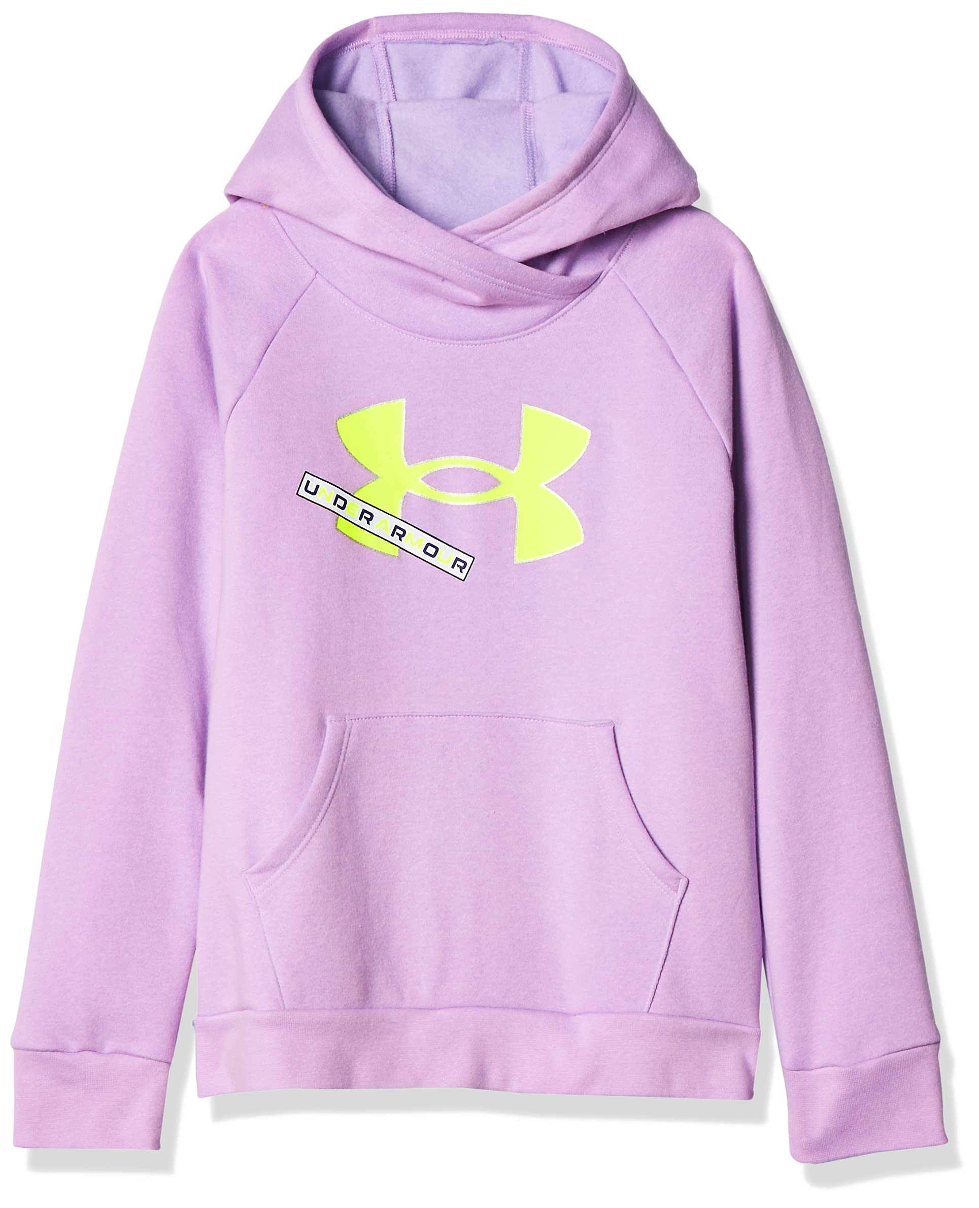 Under Armour Girls' Rival Fleece Logo Hoodie , Pacific Purple (549)/High-Vis Yellow , Youth X-Large