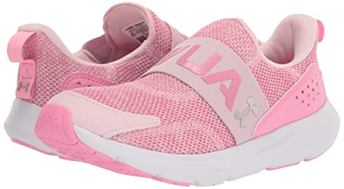 Under Armour Girls Grade School Surge 3 Slip on Sneaker, (600) Prime Pink/Flamingo/Metallic Silver, 3.5 Big Kid