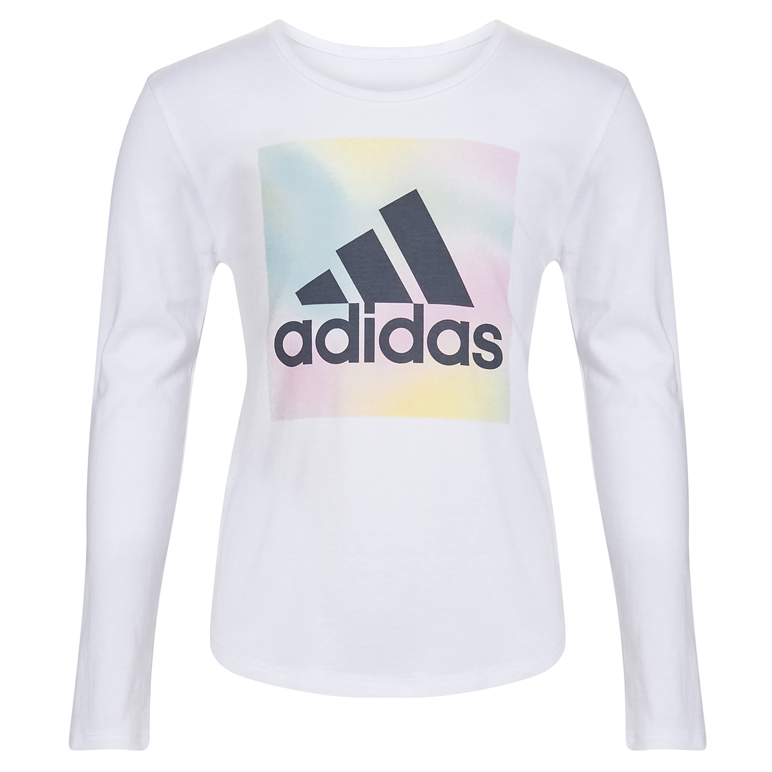 adidas Girls' Long Sleeve Vent Graphic Tee, White/Multi Squared, 2T