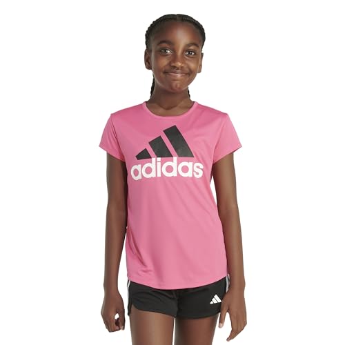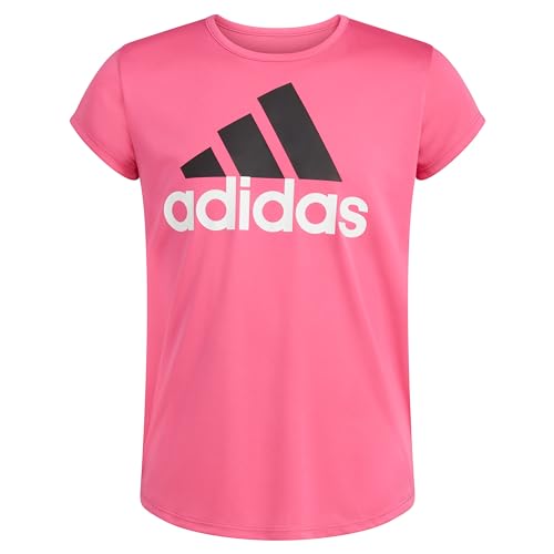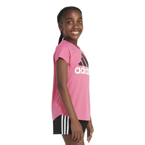 adidas Girls' Short Sleeve Cotton Scoop Neck Tee T-Shirt, Pulse Magenta