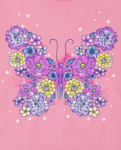 The Children's Place Girls' Short Sleeve Multi-Color Graphic T-Shirt, Butterfly Flowers, Medium