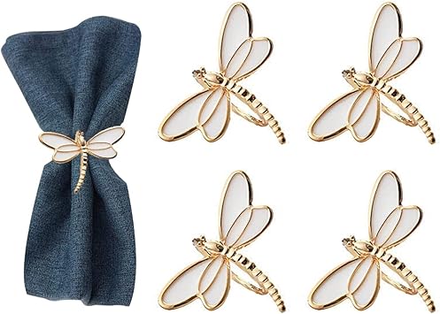 Decozen White Gold Napkin Rings Holder Set of 12 in Dragonfly Design Festive Table Decor Setting for Holiday Wedding Birthday Kitchen Home Decor Housewarming Gift