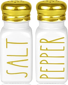 Luxury Gold Salt and Pepper Shakers Set by Brighter Barns - Modern Farmhouse Decor for Restaurant, Wedding, Gifts - Glass Shakers & Stainless Steel Lid - White and Gold Kitchen Accessories (Gold)