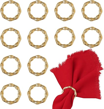 Napkin Rings Set of 12 - Bamboo Knuckles Style Gold Napkin Holder Rings - Elegant Table Decoration for Weddings, Family Dinners, Parties, Christmas, Thanksgiving - Complete Set for Any Occasion