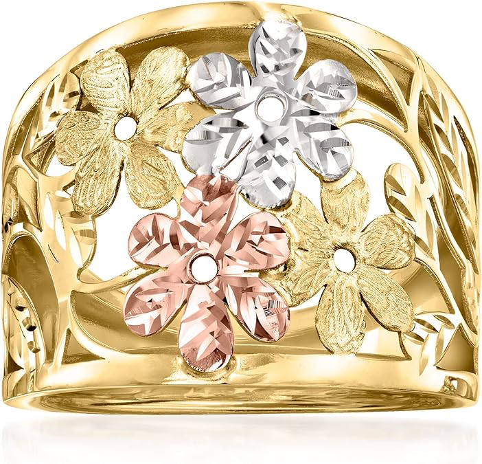 Ross-Simons Italian 14kt Tri-Colored Gold Floral Ring