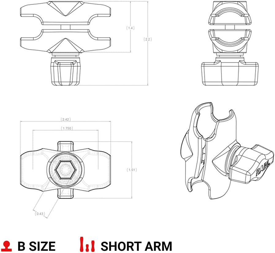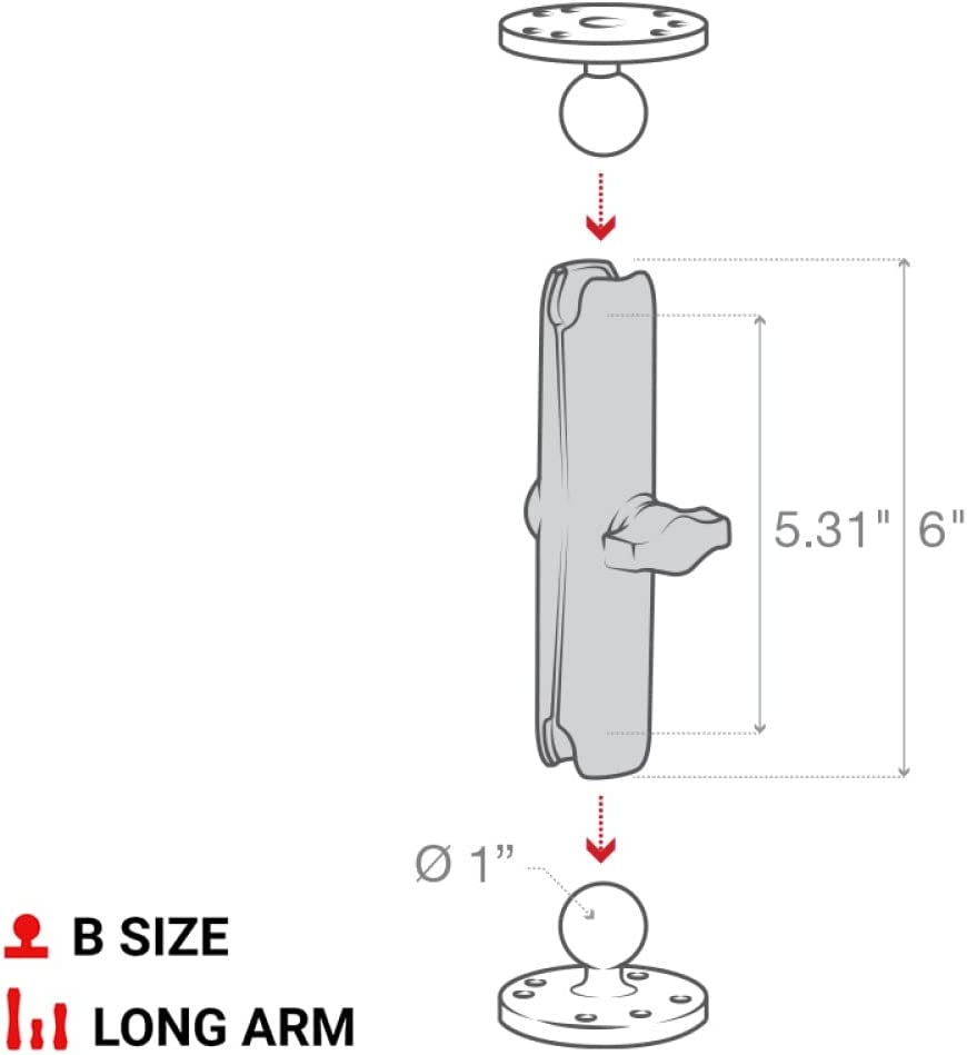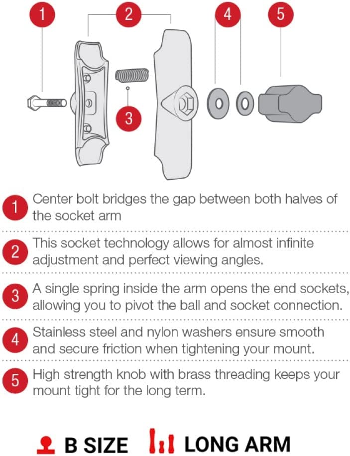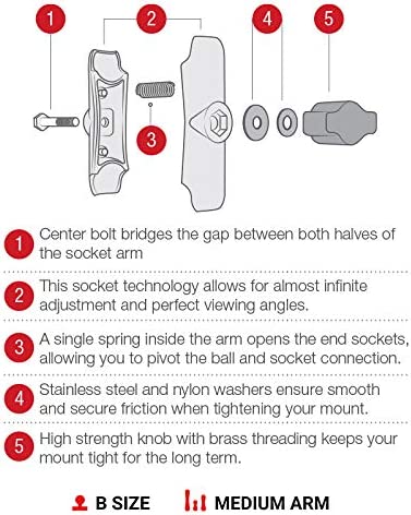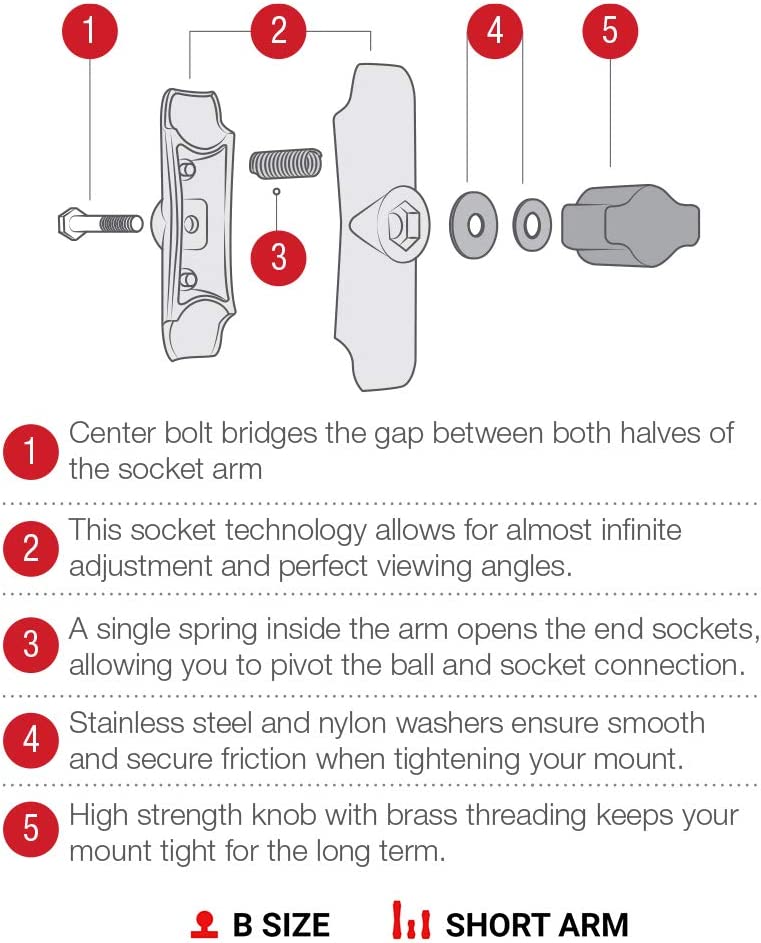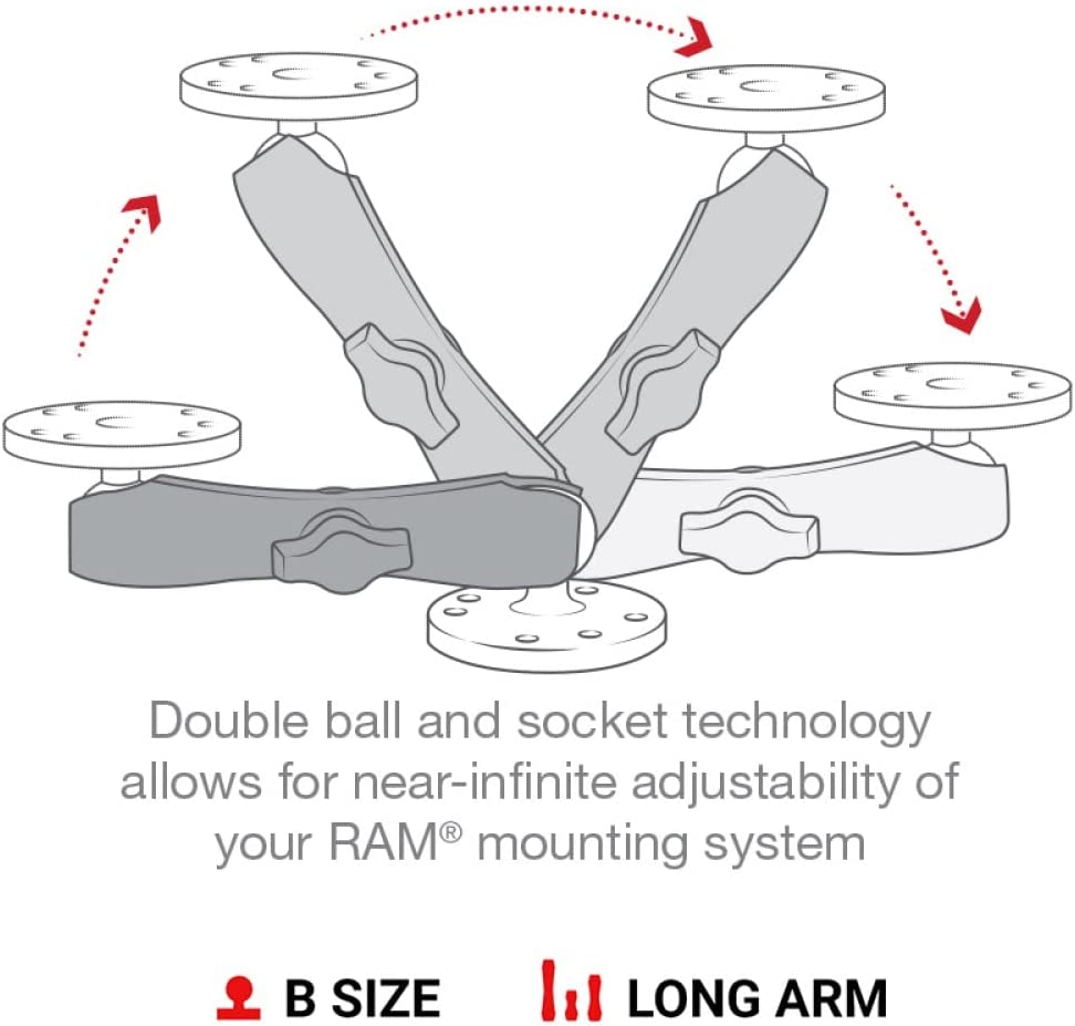 • Attaches to any B size RAM ball component, including mounting bases and device holders; double ball and socket technology allows for near-infinite adjustability of your RAM mounting system