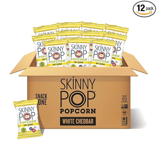 SkinnyPop Popcorn, Gluten Free, Non-GMO, Healthy Snacks, Skinny Pop Dairy Free White Cheddar Popcorn, 1oz Individual Size Snack Bags (12 Count)