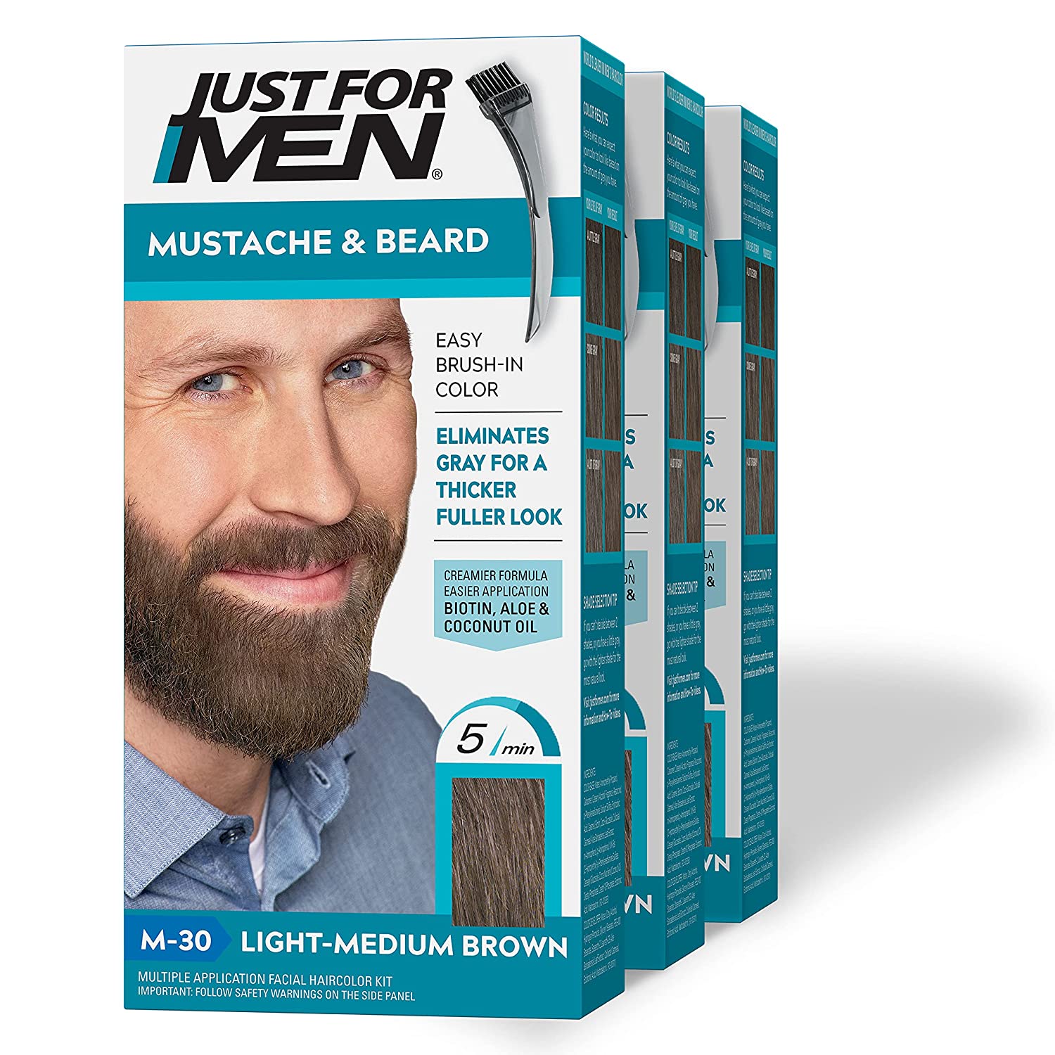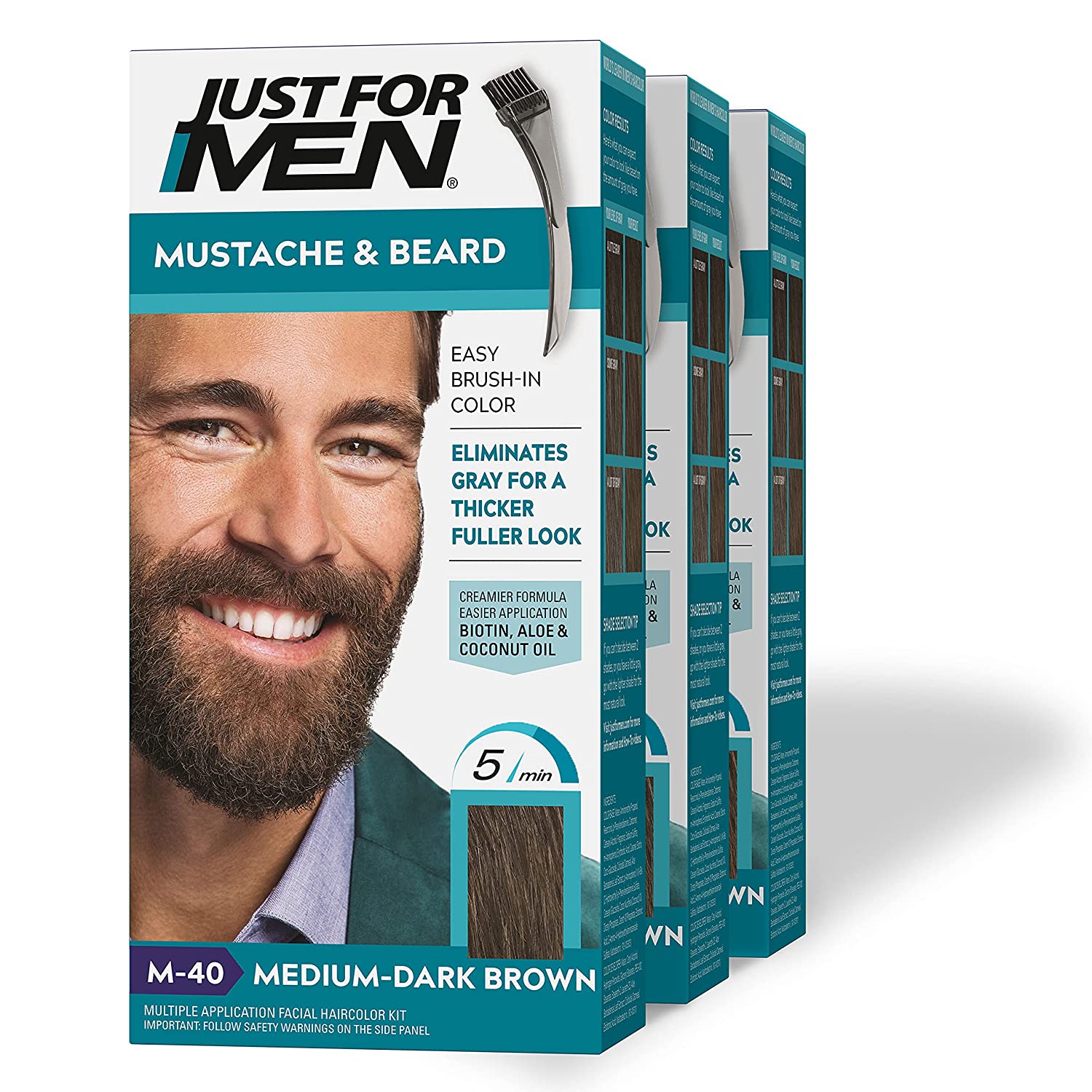 Just For Men Mustache & Beard, Beard Dye for Men with Brush Included for Easy Application, With Biotin Aloe and Coconut Oil for Healthy Facial Hair - Medium Brown, M-35, Pack of 1