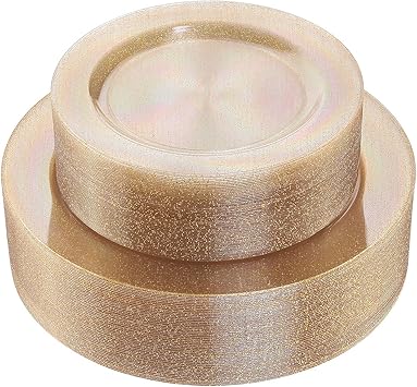I00000 102PCS Gold Glitter Plastic Plates, Gold Glitter Disposable Plates Clear Plastic Party Plates Include 51 Dinner Plates 10.25" and 51 Dessert Plates 7.5" for Parties &Wedding