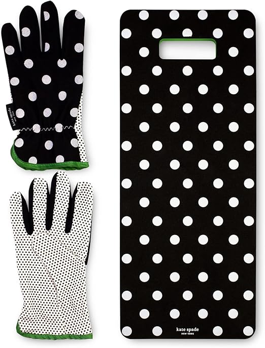 Kate Spade New York Garden Kneeler and Gardening Gloves for Women, Cute Garden Tool Set with Thick Kneeling Pad and Yard Gloves, Picture Dot