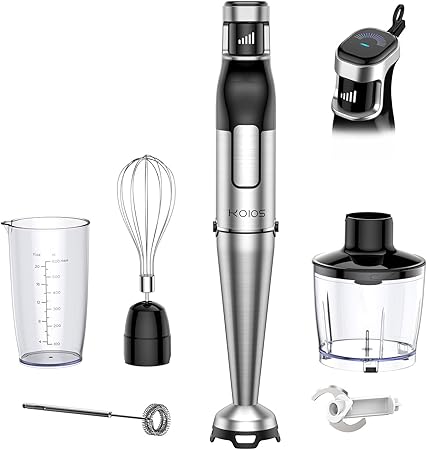 KOIOS Immersion Blender Handheld - Trigger Variable Speed 5-in-1 Immersion Hand Blender 1100W, Anti-Scratch Stainless Steel Shaft, Chopper & Milk Frother, Non-BPA for Soup, Baby Food and Smoothies