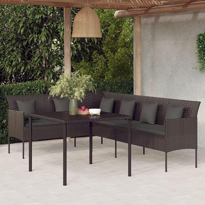 Elegant 2 Piece Patio Dining Set for Garden Relaxation, L-Shaped Sofa and Table with Cushions, Stylish Black Rattan Design