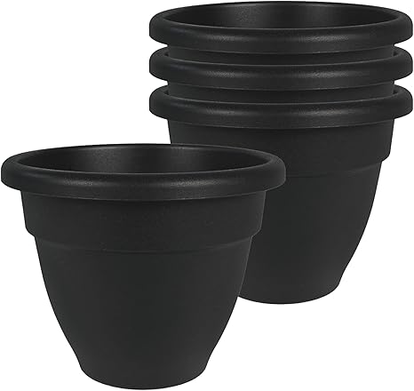 The HC Companies Caribbean Planter Pot - Outdoor & Indoor Plant Pot with Drainage Hole & Plug - Rolled Rim Plastic Pots for Plants & Flowers - Decorative Plant Pot (6Š—� Black, Pack of 4)